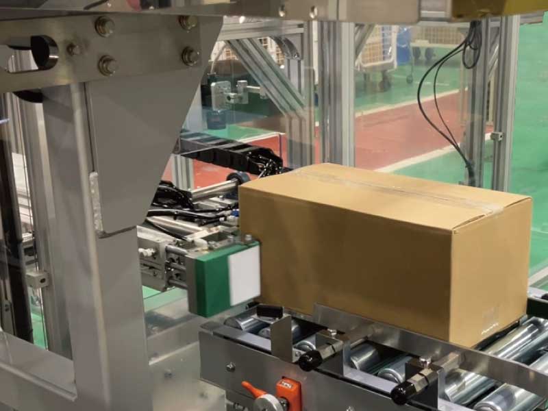● 上流の箱詰め機から下流のケーシングパレタイザーまで自動化し、