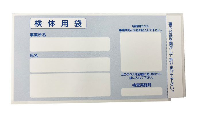 検便検査キットを企業や施設に配付する際、①袋(チャック付き)、②検便用スティック、③レーザービームプリンターで名前を印字したラベルの3点を用意する必要がありました。また、名前入りのラベルを袋に貼付し、袋の中に検便用スティックを封入する作業を行っており、作業員の負荷となっておりました。業務効率の改善を検討する中、当社サイト経由でお問い合わせいただきました。